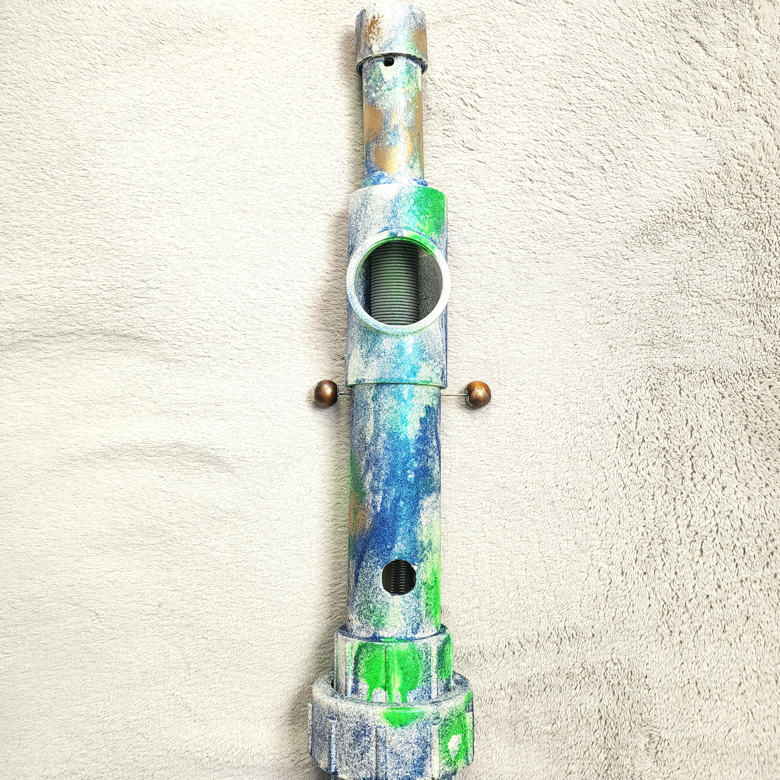 I discovered that people listen to recordings of this underwater music to relax and enter a mindful state. Something I know will especially help the grieving. Each Whale Flute is hand-built from reclaimed materials, with a spring reverb chamber for deep echo and a flexible hose for tone control. Blow gently or firmly and adjust the hose to discover your own unique sounds.